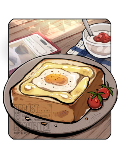 理想の朝ごはん描いてみた マヨエッグトースト